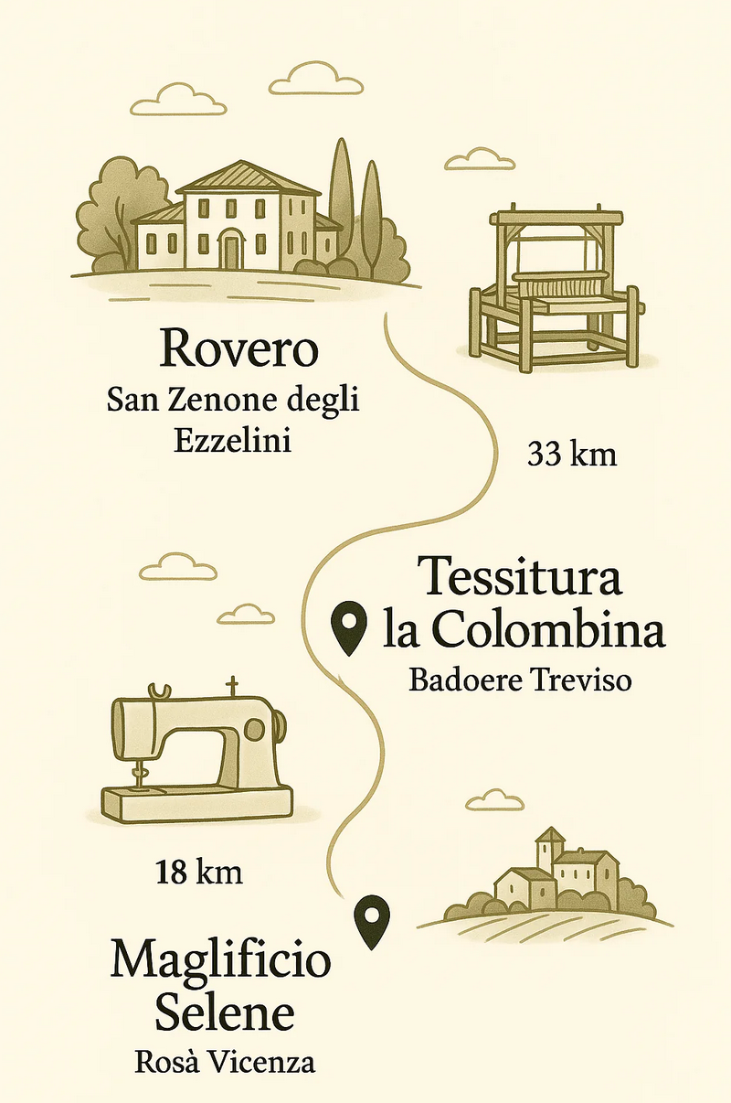 La qualità è una scelta. In Rovero, ogni capo è il risultato di un processo produttivo curato meticolosamente e a filiera corta. I nostri fornitori di fiducia si trovano entro 30 km da noi, creando una rete coesa che garantisce materiali eccellenti, attenzione al dettaglio e sostegno all’economia locale. Eliminando gli intermediari e puntando su un modello direct-to-consumer, possiamo offrire capi di lusso a un prezzo più accessibile — senza mai scendere a compromessi sulla qualità che ci contraddistingue.